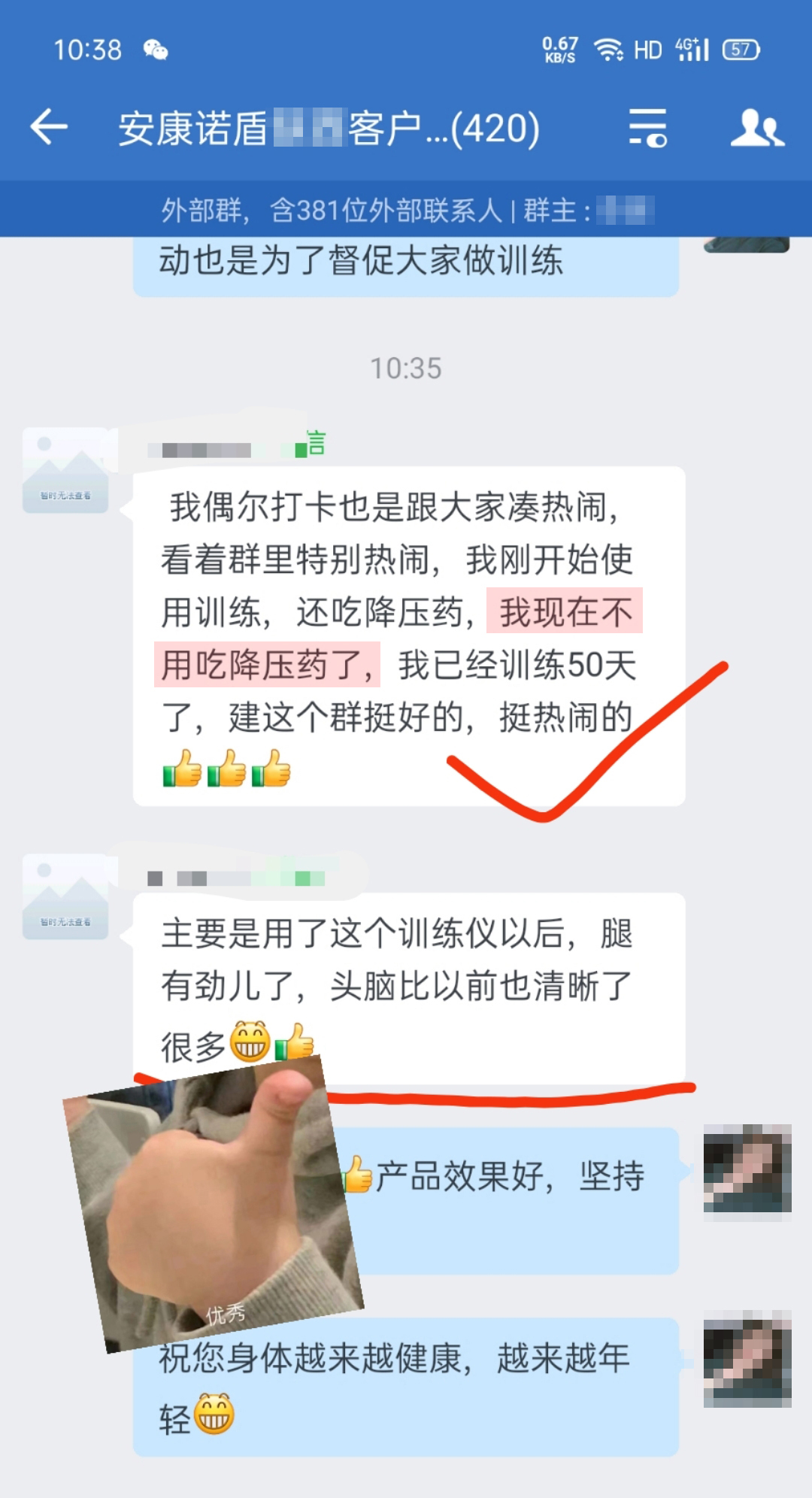 許多人可能不知道,《中國心腦血管病報告2021》曾展示了一組令人心驚的數(shù)據(jù): 我國心腦血管病現(xiàn)患人數(shù)為3.6億,每年約有380萬人死于心腦血管病,占我國每年總死亡人數(shù)的56%。 而幸存下來的患者,有75%不同程度喪失勞動能力、40%重殘。 遏制心腦血管疾病上升趨勢,是一項巨大的挑戰(zhàn)! 預防心腦血管疾病,要從三個方面入手: 改善生活習慣 調(diào)整作息習慣 控制危險因素 生活、作息習慣改善很容易做到,但控制危險因素,很多人不知道從何入手。 首都醫(yī)科大學宣武醫(yī)院吉訓明及其研發(fā)團隊經(jīng)過多年深入研究,成功轉(zhuǎn)化為可用于臨床的儀器,并榮獲2020國家科技進步獎二等獎。 他表示,缺血預適應的訓練,主要是用于心腦卒中的預防和治療,經(jīng)臨床結果表明,對這四類人群有顯著的效果。 安康諾盾預適應訓練儀就是這樣一款儀器,通過對人體進行反復、短暫、無創(chuàng)傷、無危害的缺血預適應訓練,激發(fā)人體免疫系統(tǒng)的應急機制,從而達到預防心腦血管等疾病的發(fā)生。 使用過的用戶紛紛給出了好評并推薦給家人、朋友。 因內(nèi)容太多,小康君從中節(jié)選出20位用戶的真實反饋,分享給大家: “用了一段時間安康諾盾訓練儀后 血壓恢復正常,頭暈的感覺消失了” “用戶的一首首詩歌 讓人感動” “用了70天后,不僅上樓變的輕快 腿腳也有力了” “周圍有好多朋友看到效果后 要我推薦給他們”